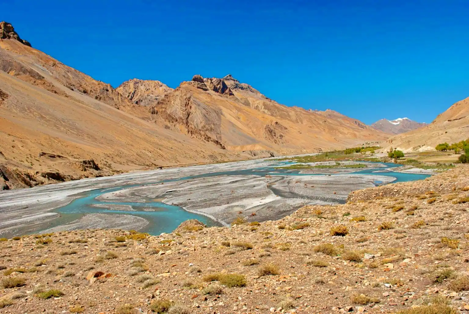 The route is a journey through the Chenab River, with ever-changing landscapes ranging from lush valleys to the barren desert of Spiti. The route will pass isolated hamlets, barley and pea fields that are green gold shades, and stunning mountains that appear to have been created by the process of time.