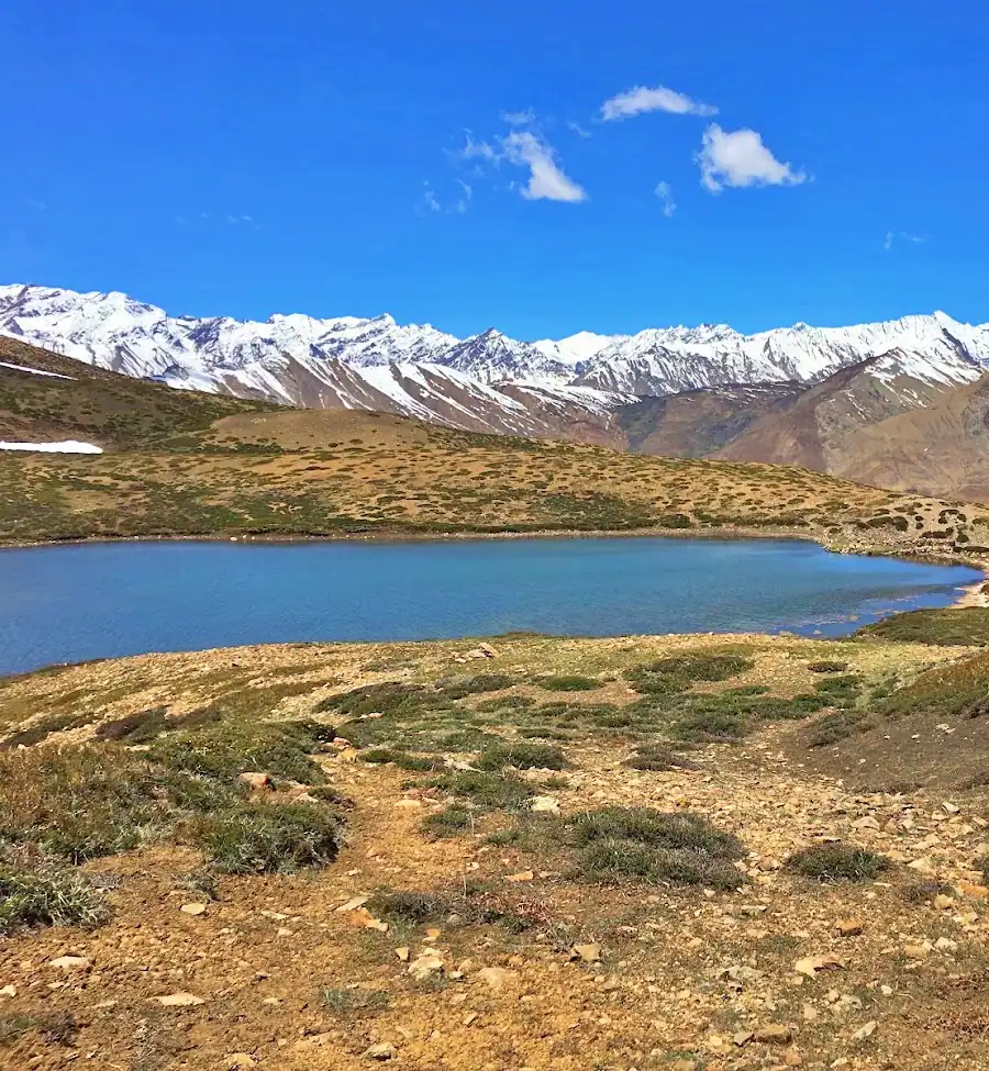 As we trek, we pass through two alpine lakes. One of them serves as an essential source of water for Kaza village, providing the village with its drinking water. A little over an hour before Base Camp, you can refill your water bottles here.
